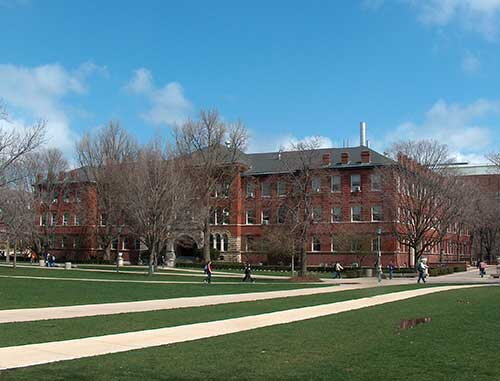 The William Albert Noyes Laboratory borders the Main Quad on the UIUC campus. Designed in the Richardsonian Romanesque style, construction of the building began in 1901 after Chemistry Department head Alfred W. Palmer successfully secured funding from the Illinois State Legislature.